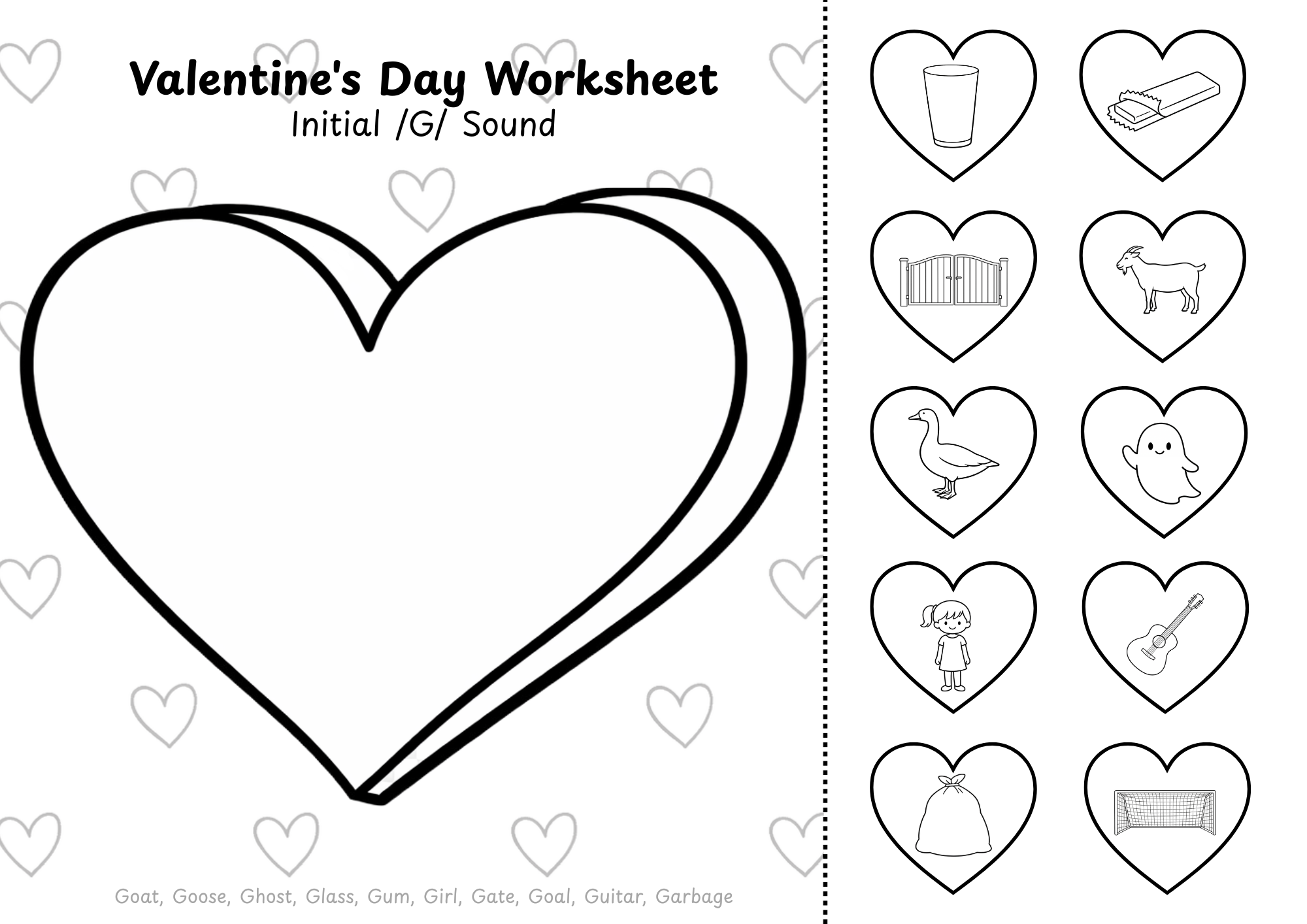 This Valentine’s Day articulation worksheet targets initial sounds (/S/, voiceless /TH/, /K/, /G/, and /R/) using engaging cut-and-paste heart visuals. Designed for print-and-go therapy.