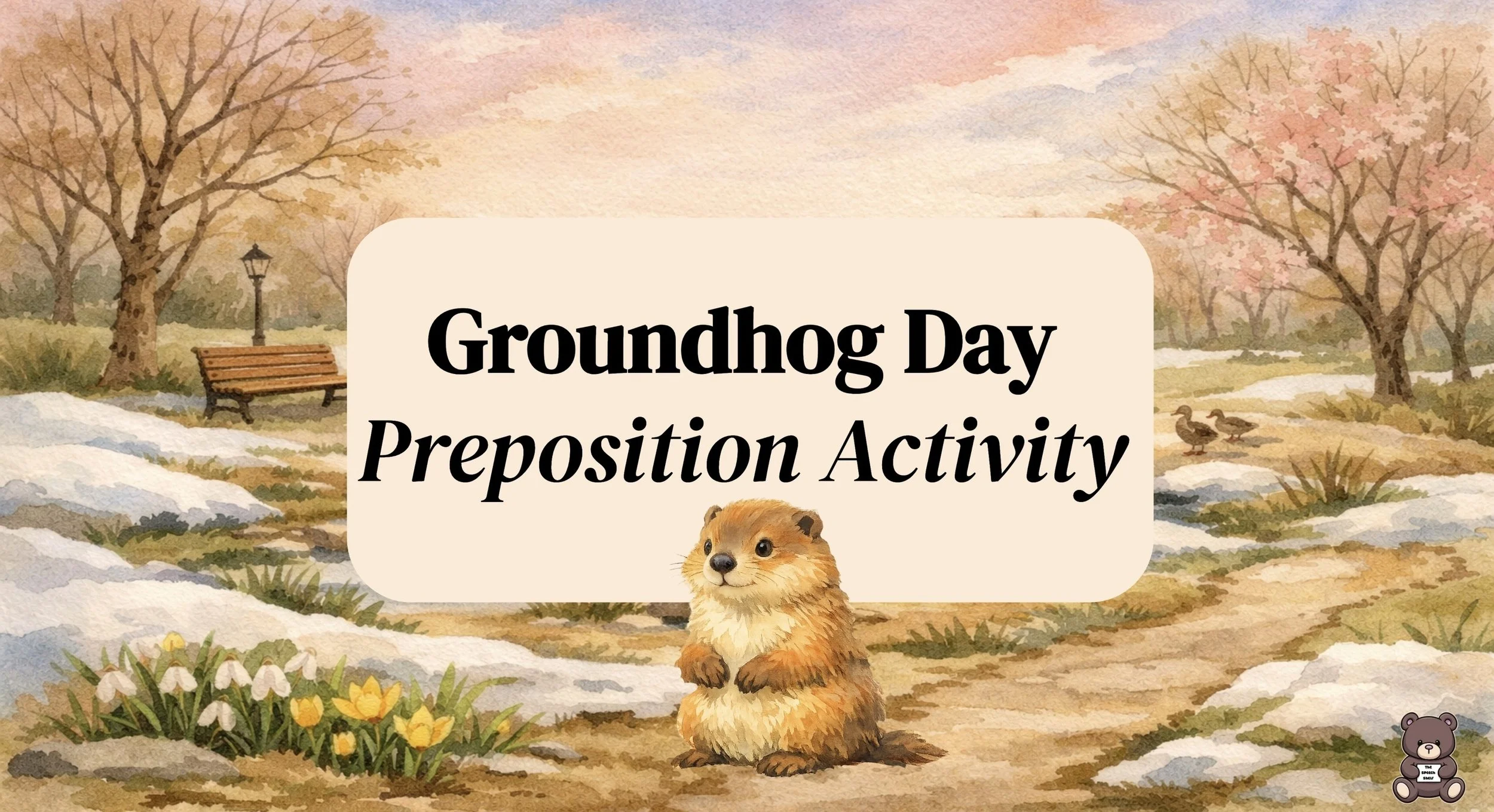 This interactive Groundhog Day activity helps students practice spatial prepositions by following visual directions and placing the groundhog in different locations within each scene. It supports receptive language, following directions, and an understanding of prepositions while keeping students engaged with seasonal watercolor visuals.