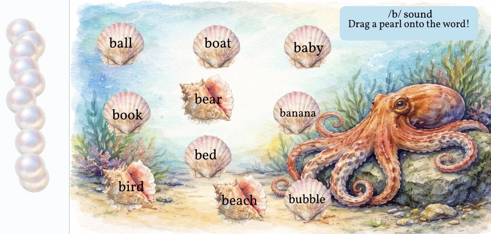 Ocean Adventures in Speech is an under-the-sea themed therapy resource targeting articulation, compare & contrast, and sentence expansion in one engaging activity pack. Students practice a wide range of speech sounds and language skills through drag-and-match word trials, describing pictures, and identifying similarities and differences using consistent visual prompts. The 35-slide deck includes 19 articulation boards, 5 compare-and-contrast activities, and 10 picture description prompts.